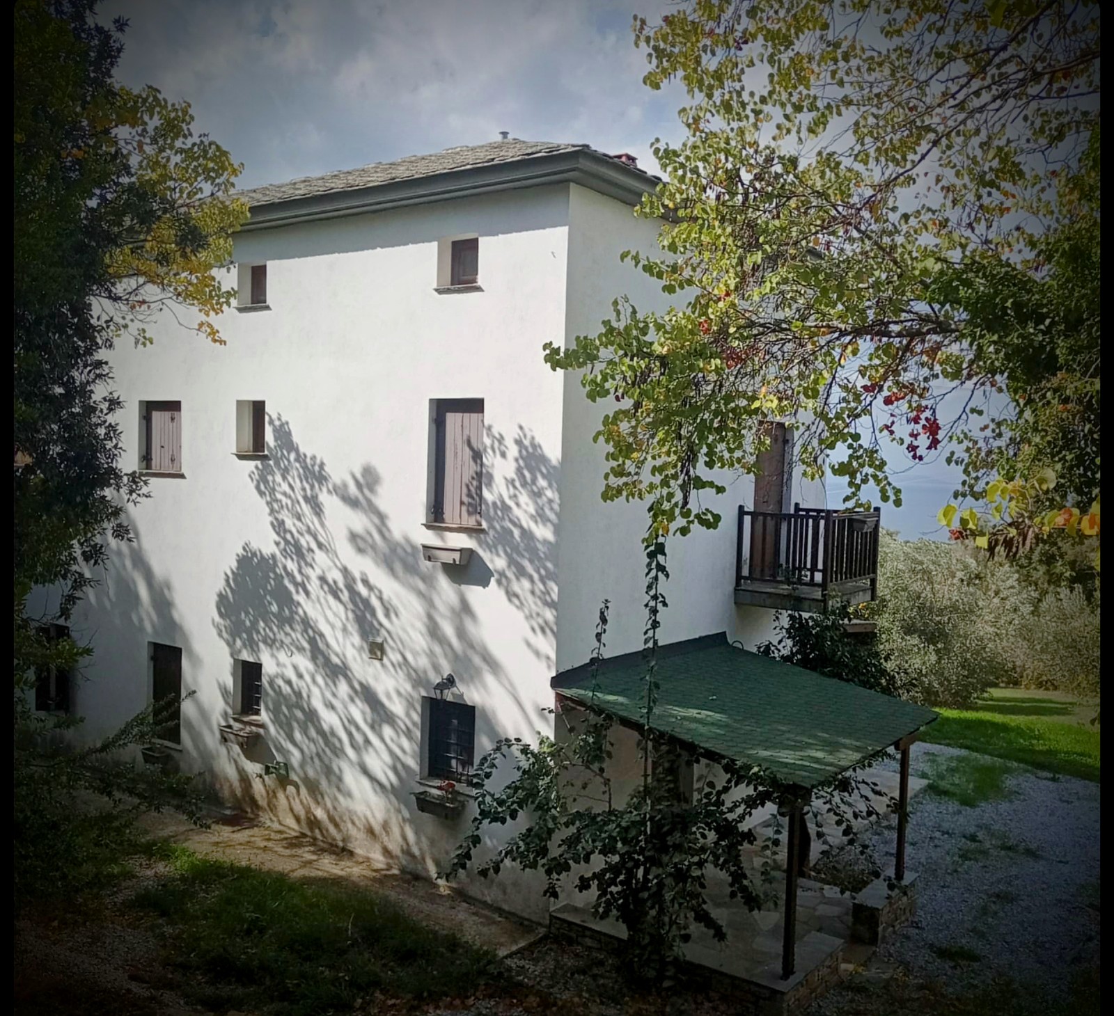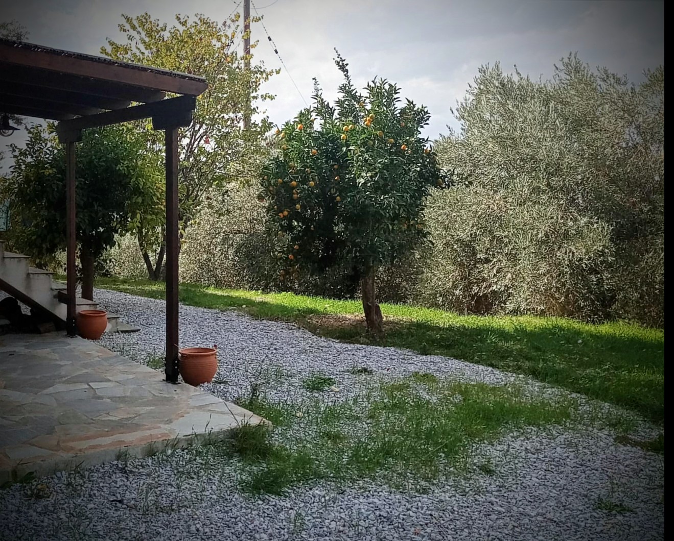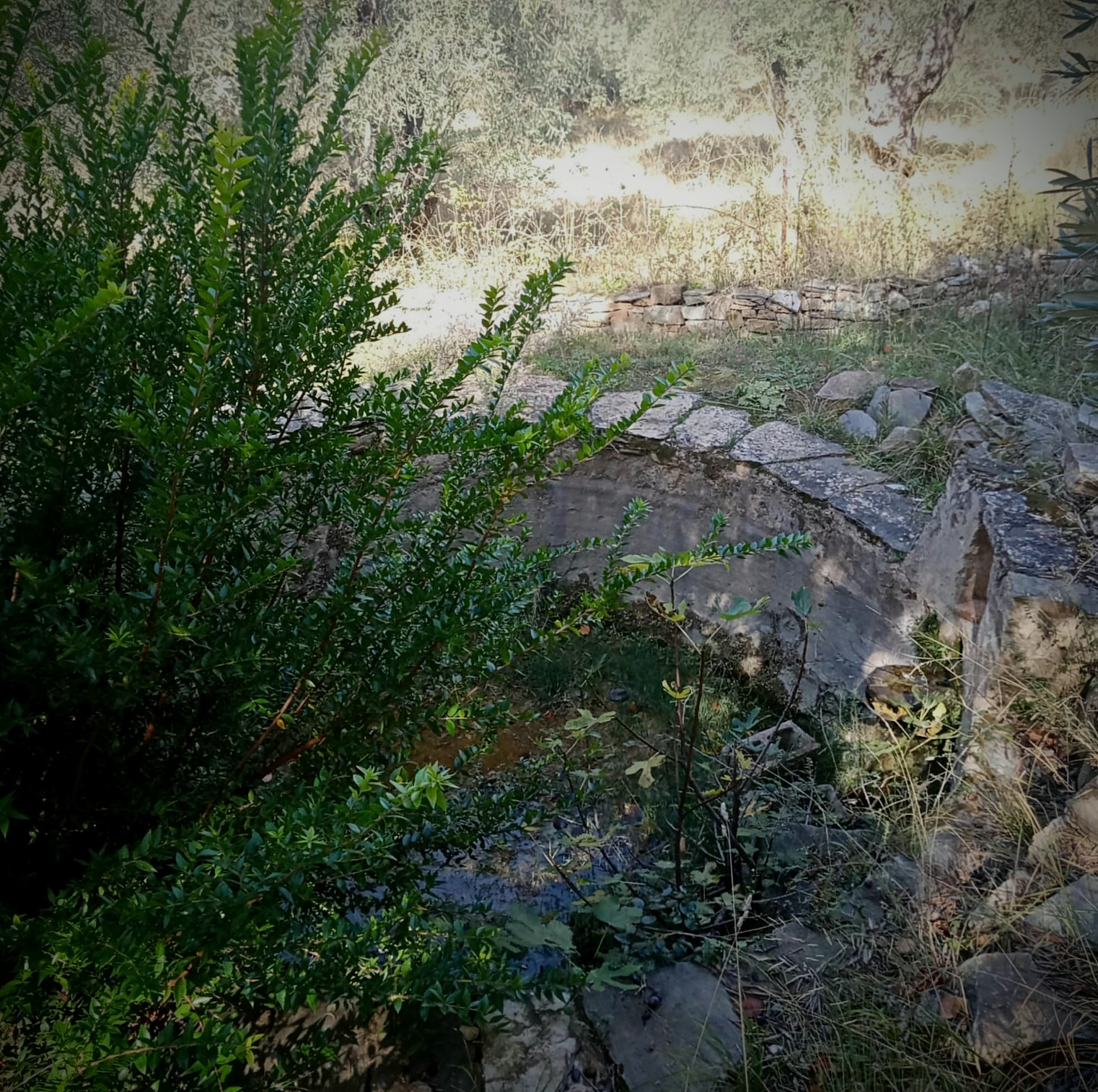 The property has a 25/100 co-ownership share in the entire building and plot, which is covered with olive trees and fruit trees. It has a private access road and a traditional stone fountain.