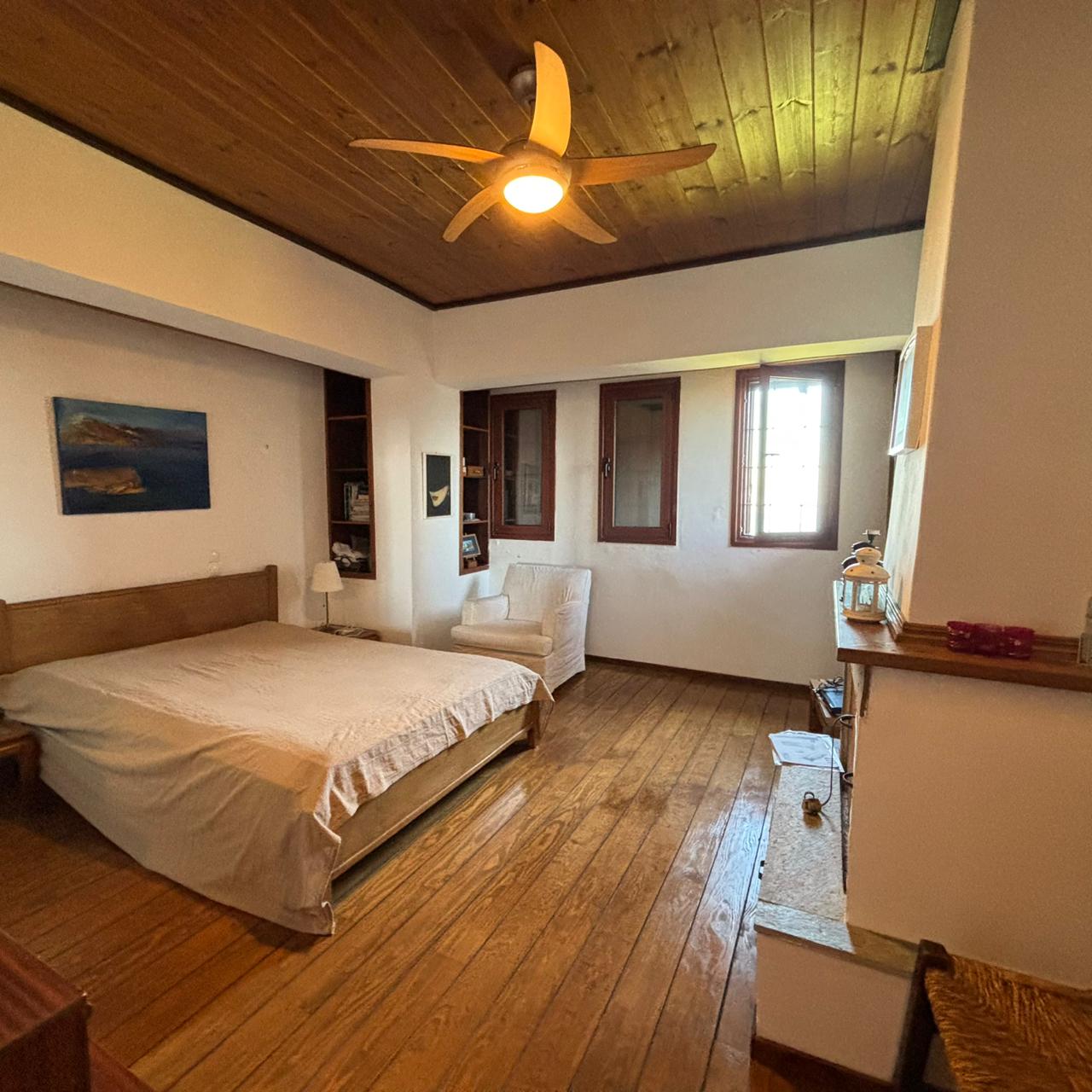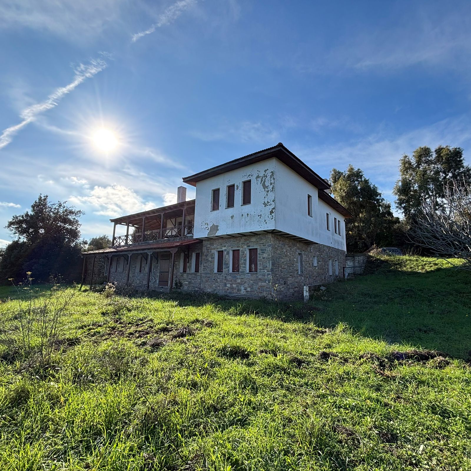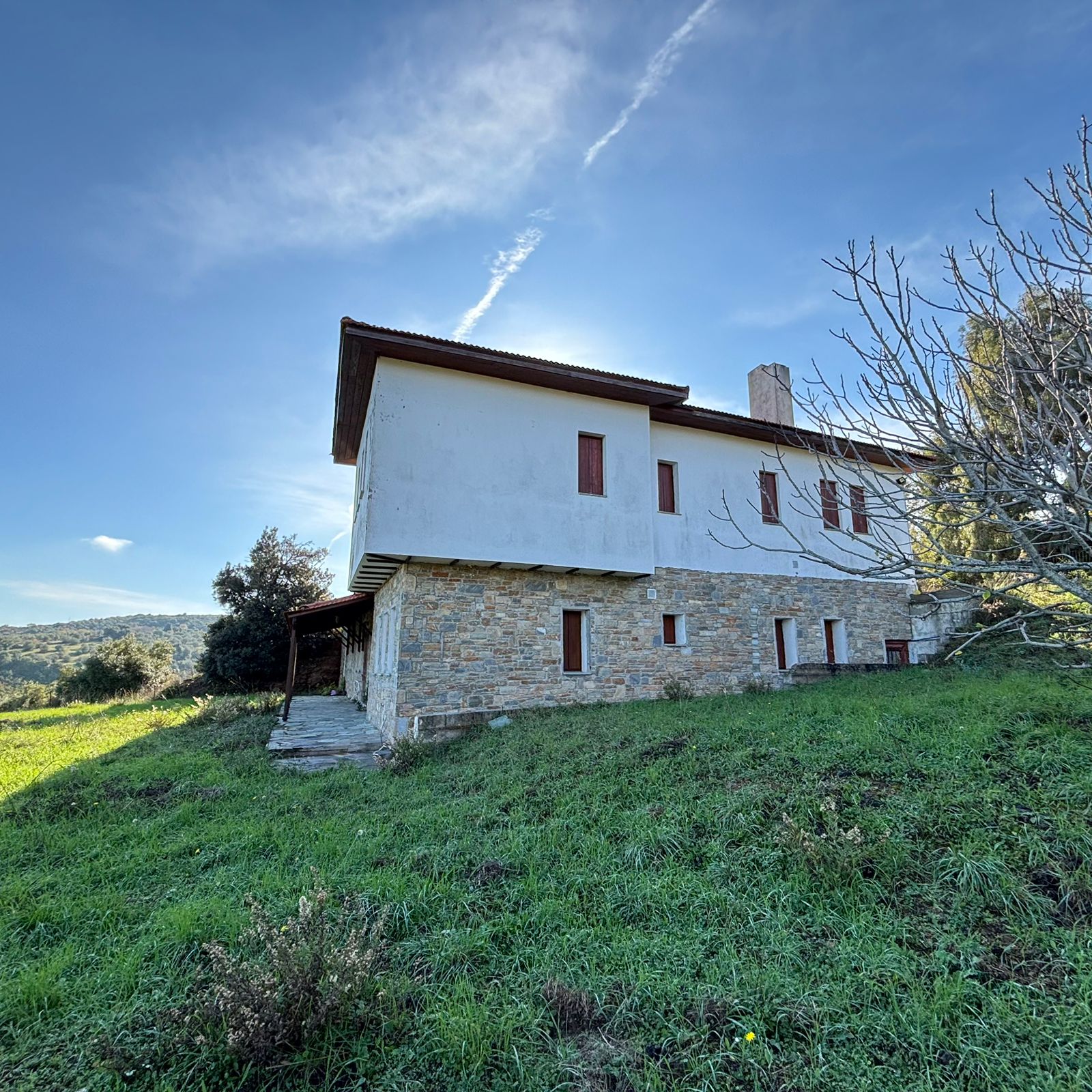 Entering the ground floor, we find an open-plan living-dining room with a fireplace, an equipped kitchen, three bedrooms with their own bathrooms and an additional space that can be configured according to your needs. An internal staircase leads to the first floor, which consists of a large living room with an energy-efficient fireplace, a kitchen, and three bedrooms with their own bathrooms. Two of these bedrooms also have their own fireplace. The view from the first floor is breathtaking, overlooking the Aegean Sea. All rooms are heated exclusively by the fireplaces, but the design and installations for radiators and a boiler room have been provided for. The property is decorated with stone details and a terrace, and is accessed via a paved road.