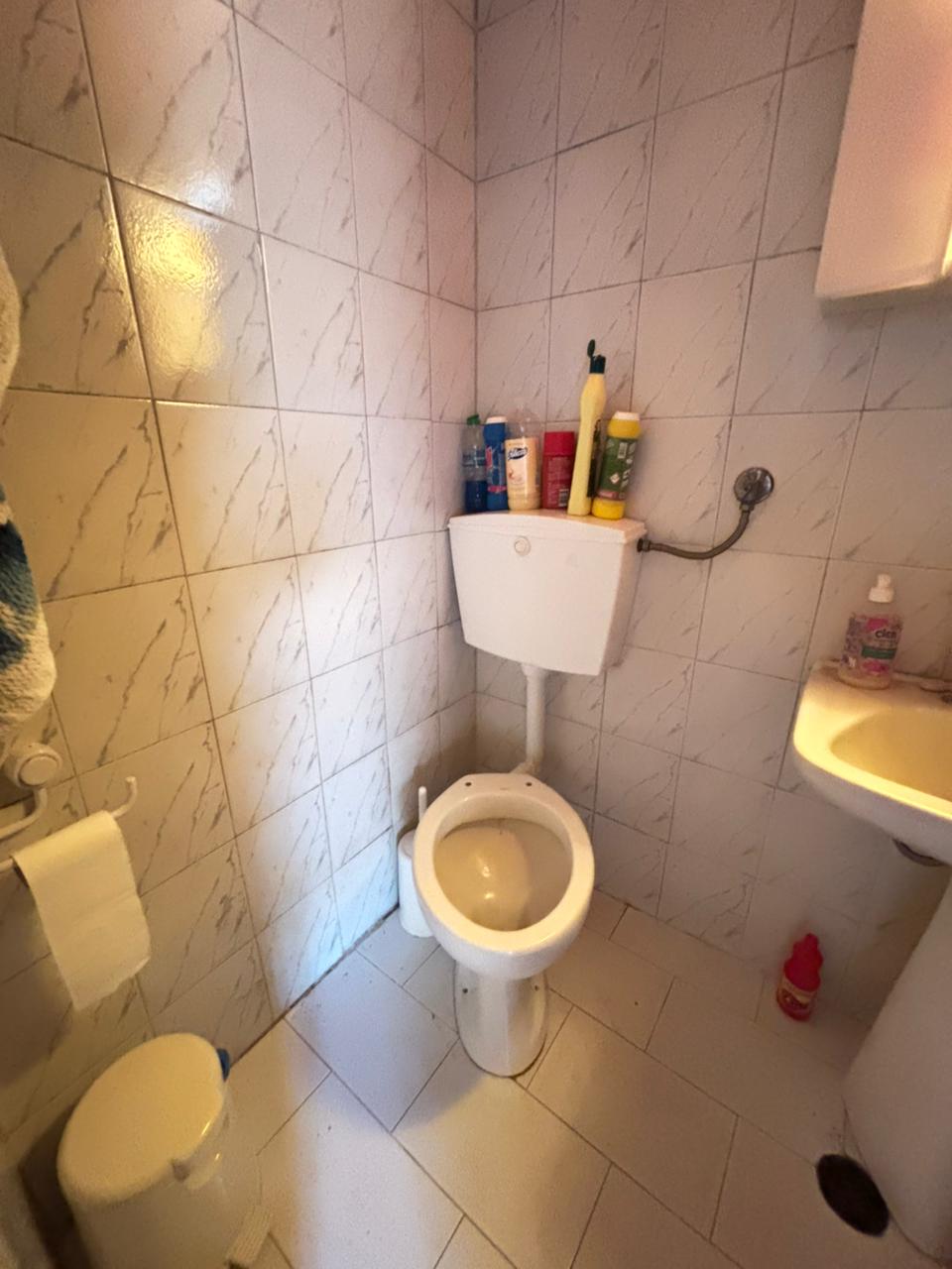 Upon entering, the house has an entrance hall, two bedrooms, a kitchen, and a bathroom. The outdoor area also includes an 11 sq.m. storage room, ideal for extra storage space.