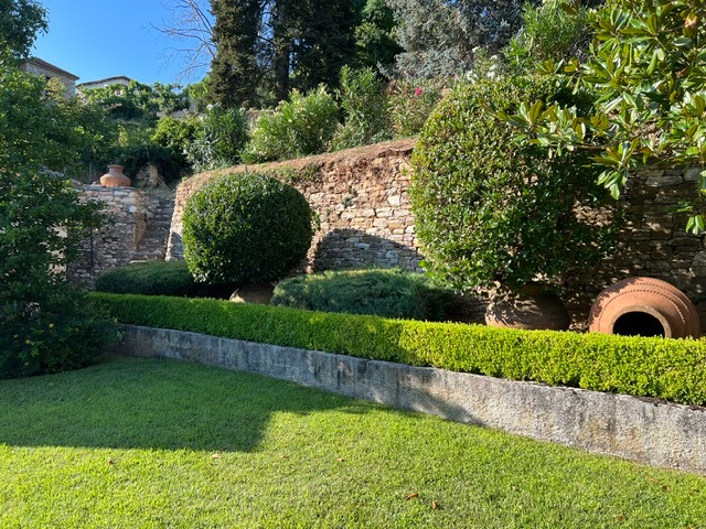 The house features wooden flooring, wooden window frames, and air conditioning, while the surrounding outdoor area is beautifully landscaped with a garden, offering relaxing moments in nature.