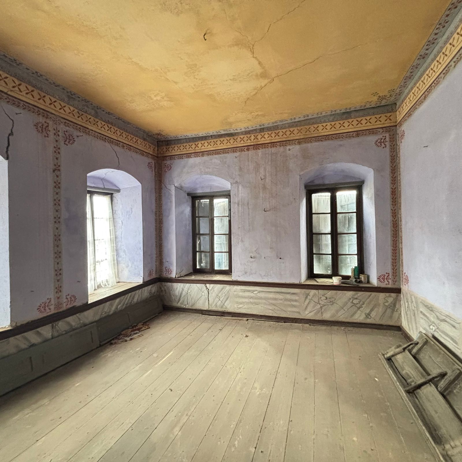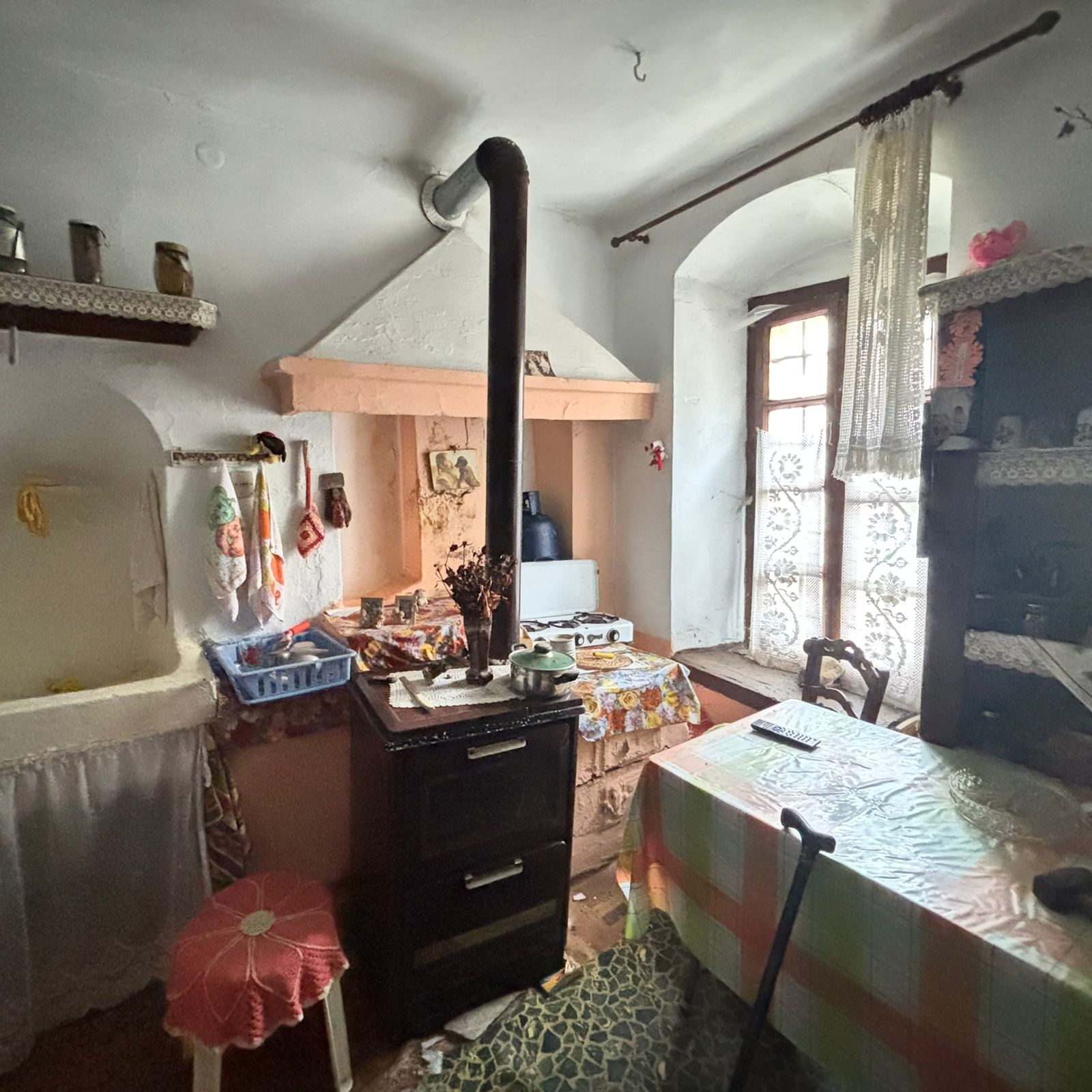 Entering the raised ground floor, we find four comfortable rooms, a kitchen, and one bathroom. On the ground-floor level there is also a cellar, which can be converted into a residential space.