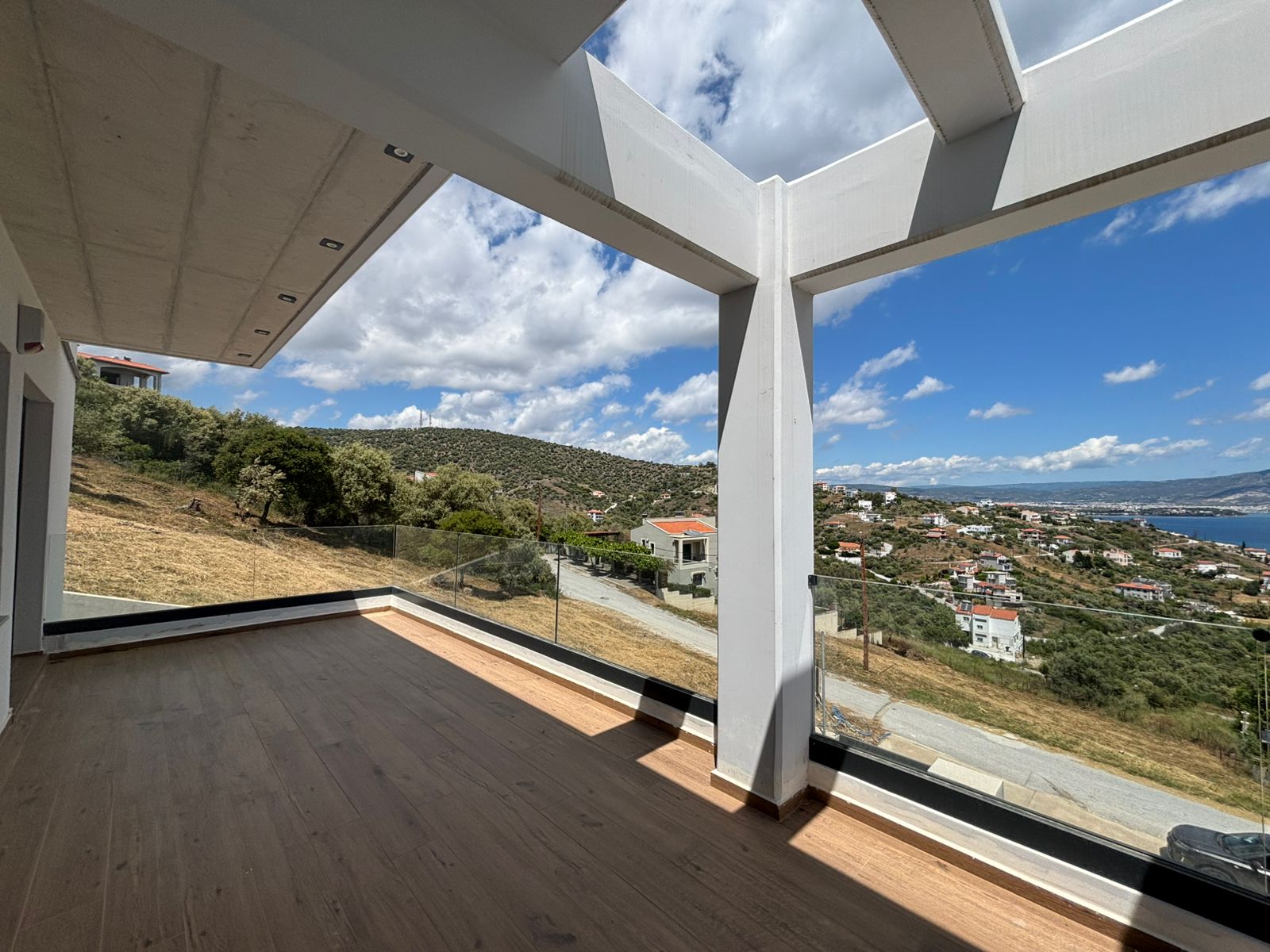 The property has amazing sea view from the ground floor, upper levels, and outdoor areas. It also includes a BBQ area and private parking space.